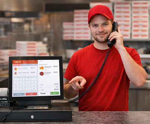 Take phone orders faster with instant Caller ID pop-ups and a flexible Pizza POS setup designed for busy counters. Incoming calls automatically display customer details, past orders, and preferences – helping staff confirm orders quickly and accurately.
